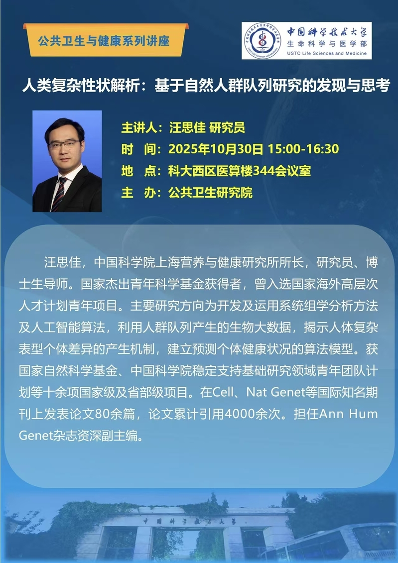 公共卫生与健康系列讲座:2025.10.30 中科院王思佳研究员学术报告会