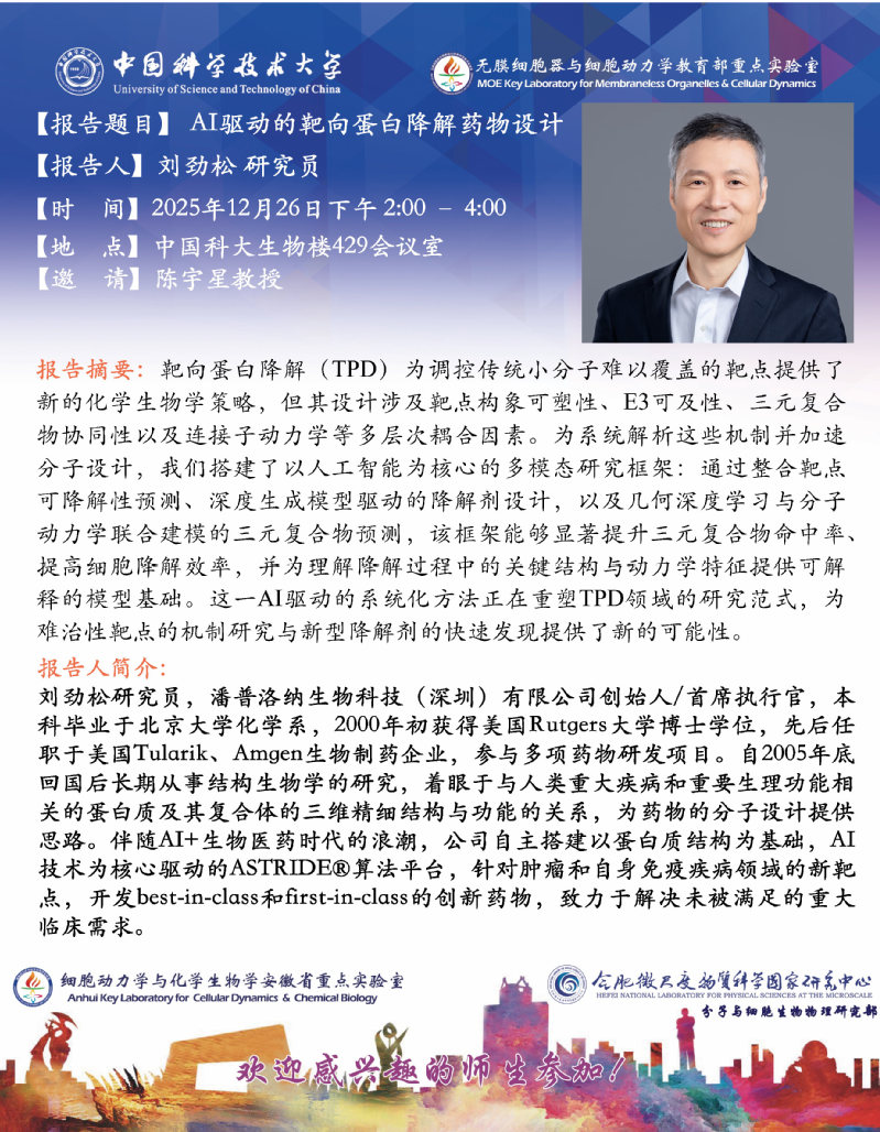 2025.12.26 刘劲松研究员“AI驱动的靶向蛋白降解药物设计”学术报告会